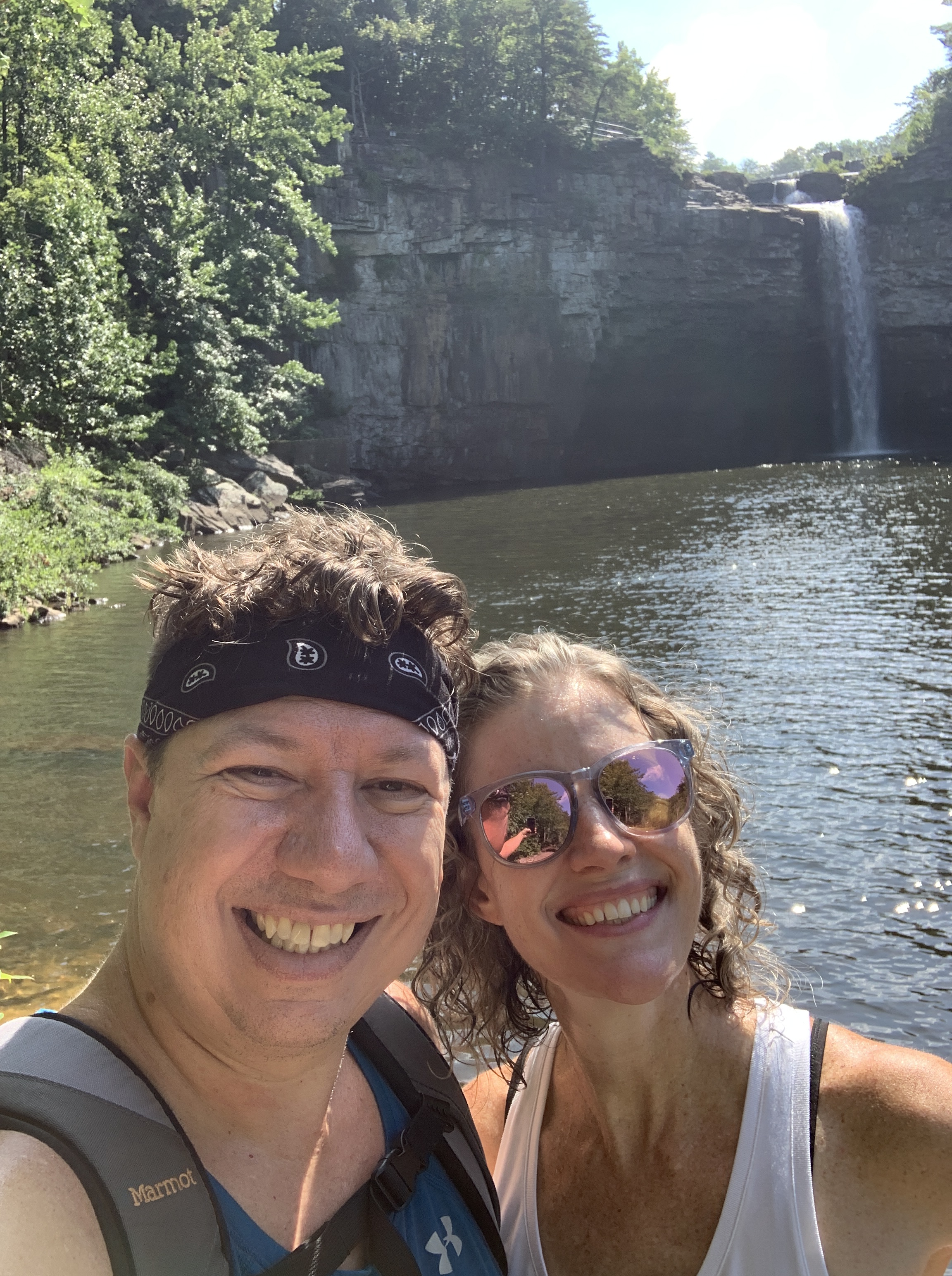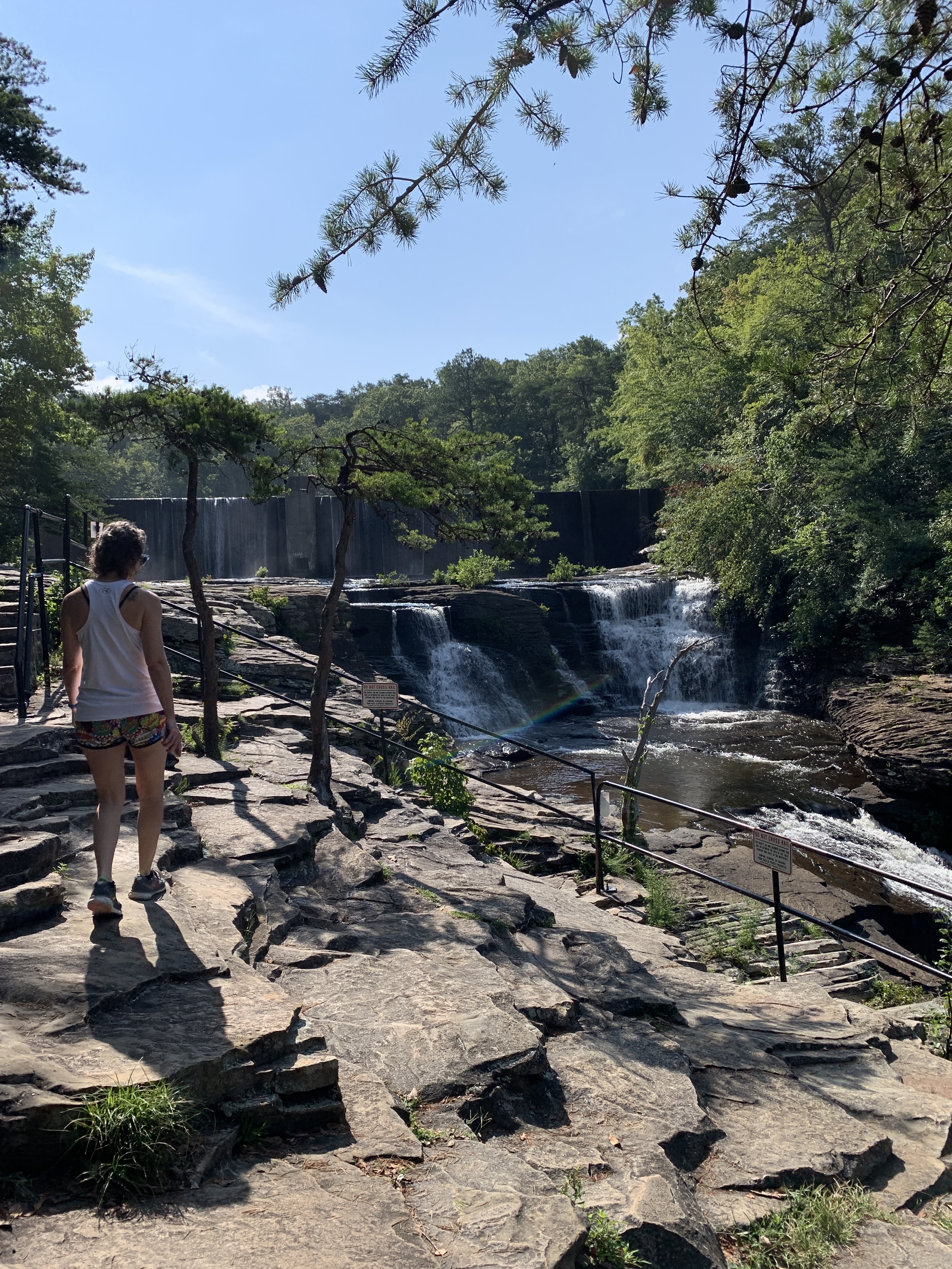 Starting at the top of the falls, we knew there must be a way to hike down. Remember, I somewhat jokingly refer to Rachel as a Disney princess, she is always greeted by wild woodland creatures and this hike proved to be no exception. Months ago we were eating breakfast outside and a spider was on the table. Her knight in shining armor thwarted the centimeters sized terror and was met with the kindest whisper of “why did you do that, he was only doing what spiders do?” I swore and oath to only strike when required or requested.